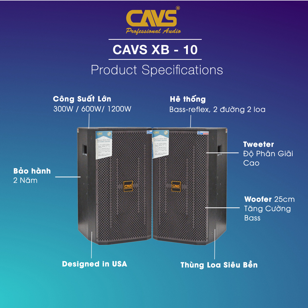 Với mức giá hợp lý, thiết kế sang trọng, khỏe khoắn, Loa CAVS XB10 có thể phục vụ cho các phòng karaoke kinh doanh chuyên nghiệp, phòng karaoke gia đình, các phòng hội trường, hội thảo hay các sự kiện lớn. Mang lại giá trị đích thực cho người sử dụng