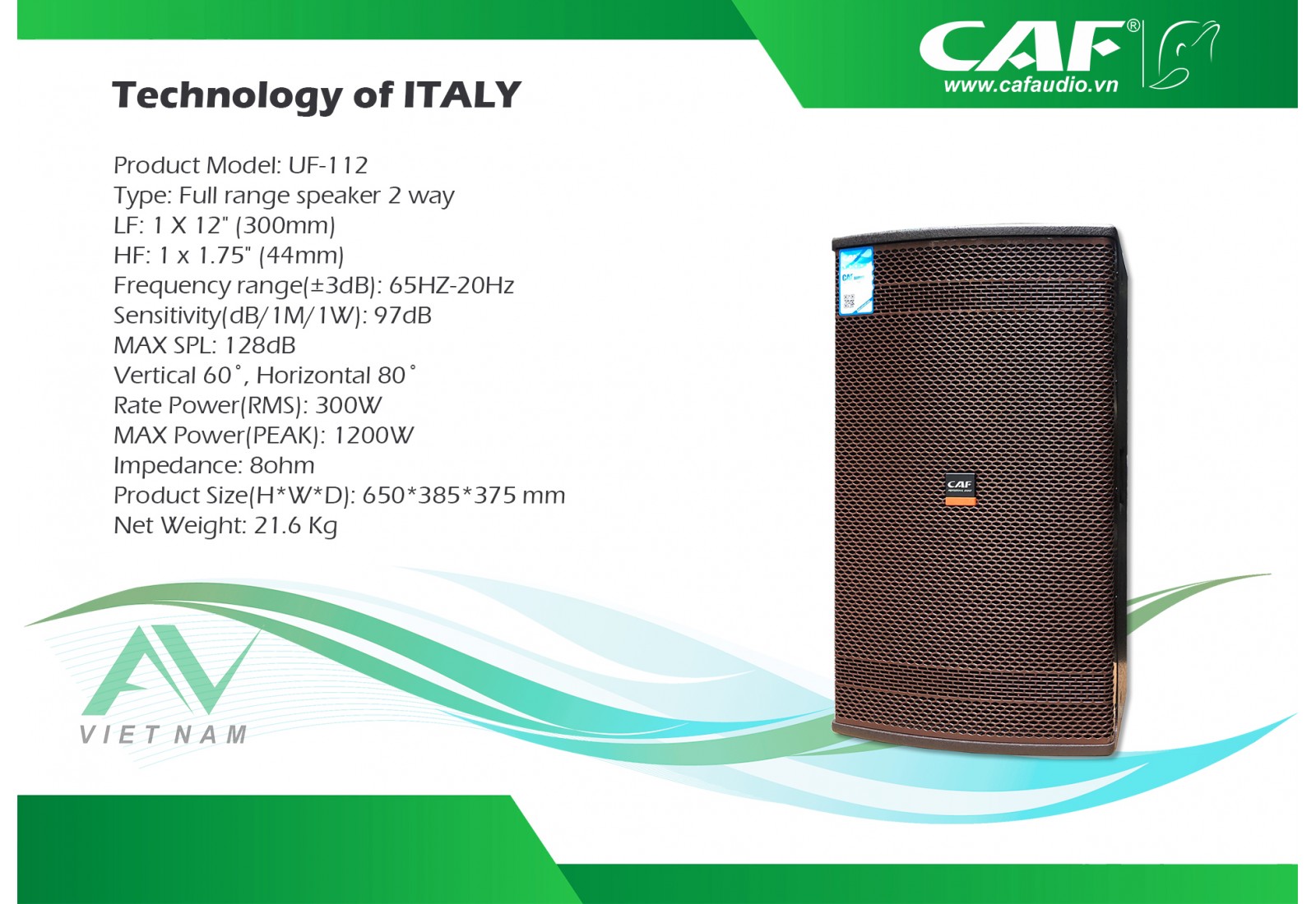 - Là dòng loa có chất lượng âm thanh tốt được đánh giá cao trong các dòng loa CAF có tiếng trung mềm mượt ấm áp, bass trắc mạnh, tiếng tress sáng rõ CAF UF-112 đã được lắp đặt hầu hết trong các phòng hát karaoke cao cấp thậm chí nhiều gia đình cũng đã mua và sử dụng, lý tưởng được biết đến nhờ sự nổi tiếng của chất lượng âm thanh cùng độ bền vượt thời gian bên cạnh đó là mẫu mã với kiểu dáng đẹp hiện đại.