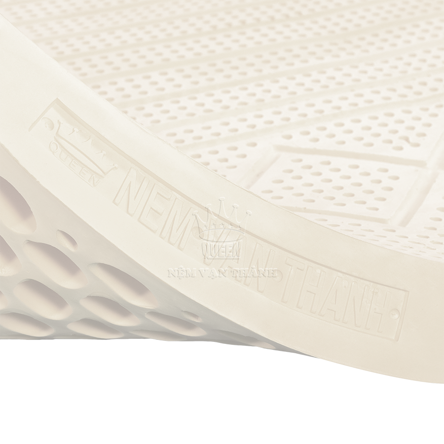» Nguồn gốc: Các dòng sản phẩm Queen Latex được sản xuất theo quy trình khép kín từ khai thác mủ cao su chế biến đến chế biến gia công đóng gói. Nguyên liệu chính sản xuất nệm cao su hầu hết được khai thác từ các nông trường cao su Nam bộ tại Bình Dương, Bình Phước, Tây Ninh… có độ ổn định cao và chất lượng