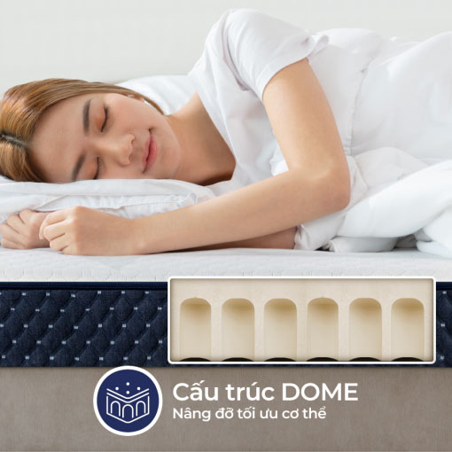 Tiên phong trong việc thay đổi cấu trúc của nệm cao su, thay vì chọn lỗ vuông truyền thống, nệm cao su L'ADOME Cool được cấu tạo từ hệ thống các mái vòm co giãn linh hoạt, nâng đỡ tối ưu mọi đường cong cơ thể. Thiết kế này cũng giúp phân tán lực đồng đều, giảm thiểu tình trạng lõm nệm, tạo cảm giác êm ái và thoải mái tối đa cho người sử dụng.