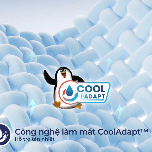 Công nghệ làm mát CoolAdapt™ được ứng dụng vào cấu trúc của từng sợi vải tạo nên lớp áo nệm luôn thoáng mát. Khi chúng ta ngủ, cơ thể duy trì nhiệt độ 37°C và tiếp tục tỏa nhiệt tạo mồ hôi; lúc này, công nghệ CoolAdapt™ hỗ trợ tản nhiệt bằng cách thúc đẩy sự bay hơi của các hạt mồ hôi tích tụ trên bề mặt vải, giúp không khí lưu thông tốt hơn từ đó tạo nên môi trường nghỉ ngơi thoáng mát.