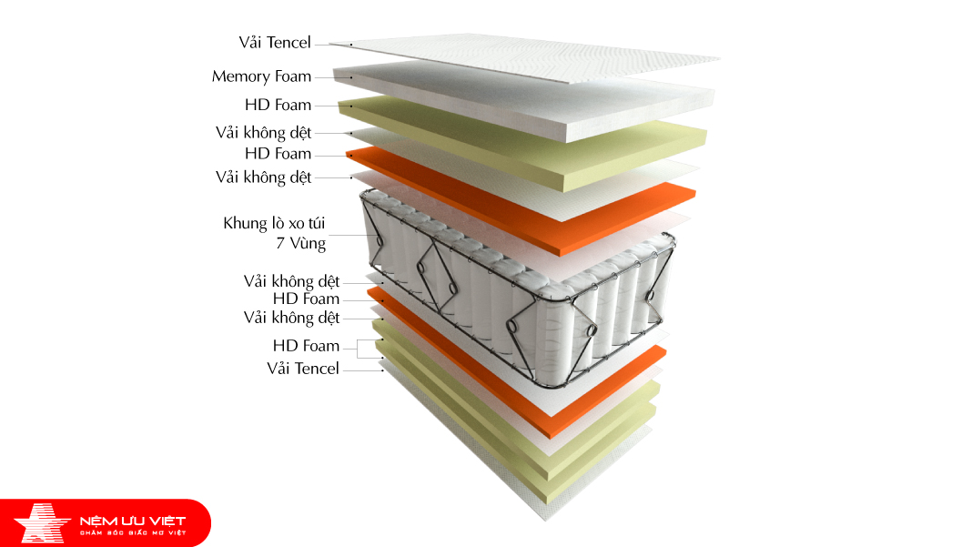 Thành phần của nệm lò xo túi Isabelle 7 vùng – Memory Foam