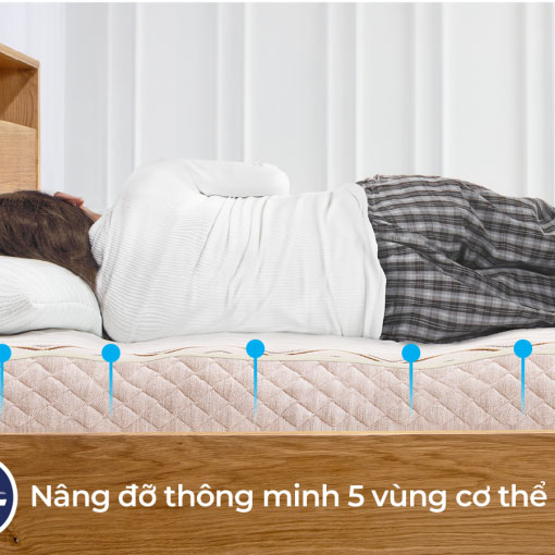 Được thiết kế dựa trên cơ sở nghiên cứu áp lực thể chất và từng vùng chuyển động của cơ thể khi nằm, nệm cao su 5ZONE tạo nên sự nâng đỡ hoàn hảo và cân bằng tự nhiên cho toàn bộ cơ thể ở 5 vùng trọng điểm: đầu, lưng, mông, đùi và chân. Một lựa chọn hoàn hảo để chăm sóc giấc ngủ và sức khỏe cho người lớn tuổi cũng như những ai gặp vấn đề đau nhức xương khớp.